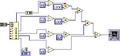 上位机接收到下位机发送的5字节数据,并以字符串形式存储,为了最终显示,需进行格式转换。首先使用“字符串至数值数组转换”函数,将接收到的字符串转换为数值数组,之后进行数组索引,提取各字节数据。前4字节为波形数据,需要转换为ASCII码形式,并进行组合以供“波形图表”控件进行使用。最后一字节为心率值,可直接显示。程序如图5所示。