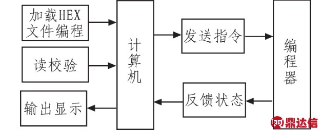 该编程器系统总体结构如图1所示,整个系统分为计算机和编程器两个部分。在对反熔丝器件编程进行的过程中,计算机产生编程控制指令控制编程器对反熔丝器件进行编程。待编程数据存储在Hex文件中,在上位机软件中通过加载Hex文件即可自动高效地将编程数据烧录到反熔丝器件中。读校验指令用于校验反熔丝器件中已烧录的数据是否与Hex文件中的数据一致。此外,编程器还将编程状态以及编程结果反馈回计算机,并在计算机上显示出来,实时监控编程过程,一旦出现故障,可及时进行故障排除。