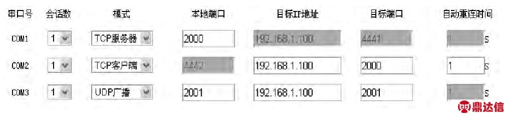 ④UDP广播模式为需配置本地端口、目标服务器IP和目标端口。
