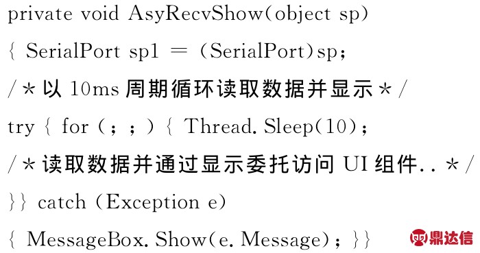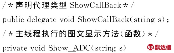 基于Serial Port类数据接收事件处理程序,借助委托实现UI组件访问,可有如下委托类型声明:public delegate void ShowCall Back(string s);