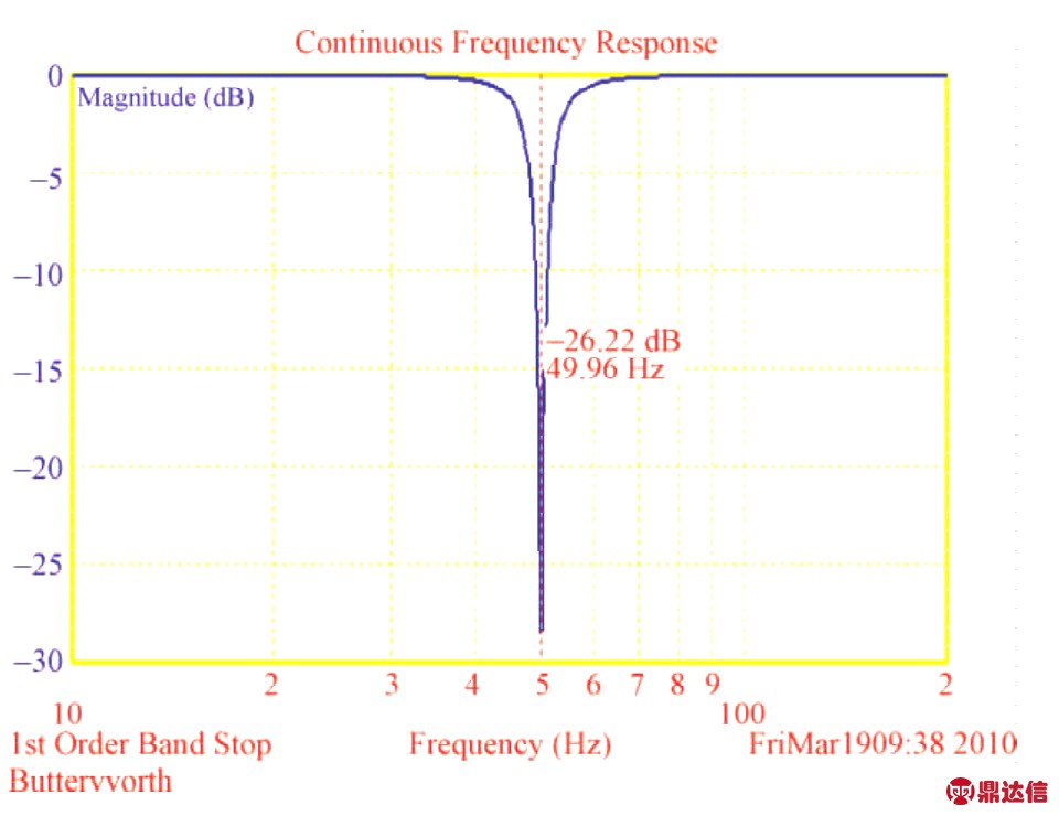 Figure 9 Frequency response diagram of 50Hz band stop Butterworth
