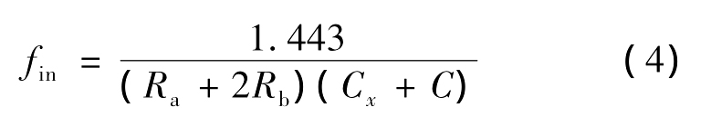 式中,f in为555输出的频率量;C x为传感器电容量;C为分布电容;R a、R b为555电路中的参数;R L、R S、R t、C t均为LM331电路中的参数。