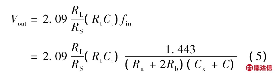 经过555振荡电路和f-v转换电路后输出电压表达式如下: