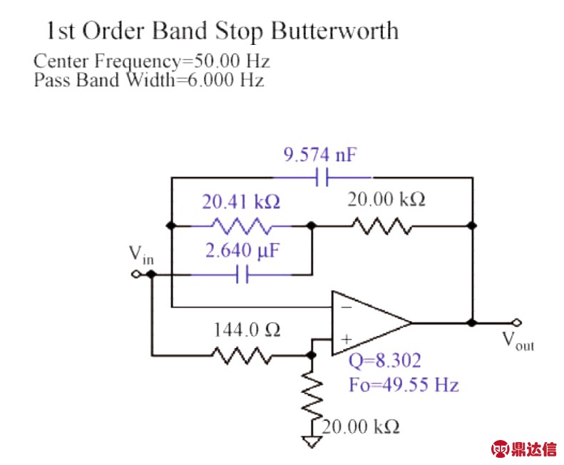 Figure 8 The circuit diagram of 50Hz band stop Butterworth