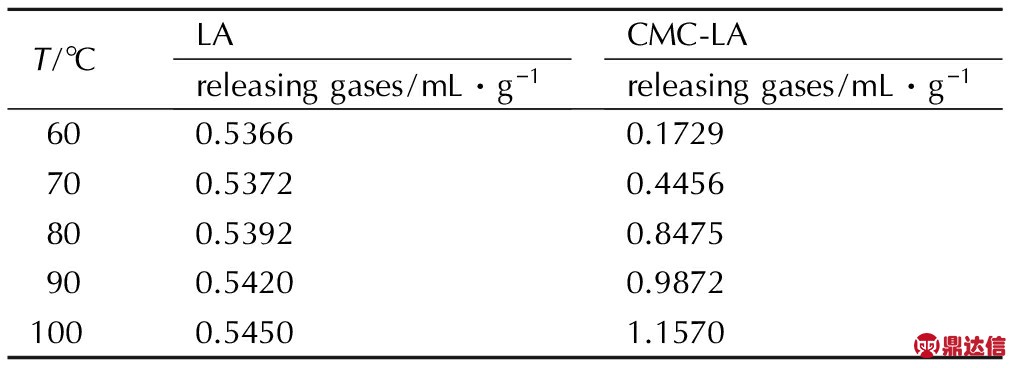 表4 LA和CMC-LA不同温度下热分解反应产气量