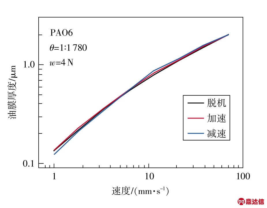 图6 PAO6加减速过程膜厚实时变化曲线
