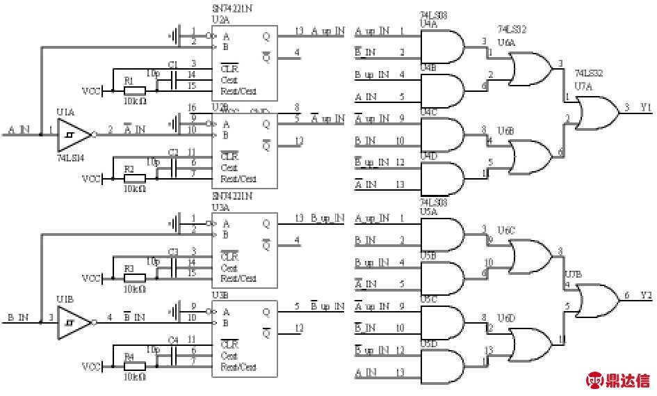 的上升沿,74LS08做相应的与运算,74LS32进行相应的或运算。具体的实现电路如图4所示。