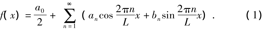 对理想的光栅莫尔条纹信号,其波形是以莫尔条纹间距L为周期的三角波(即以L为周期的非正弦信号),因此,可以用傅里叶级数来表示该信号。以f(x)表示此三角波的光通量,则有