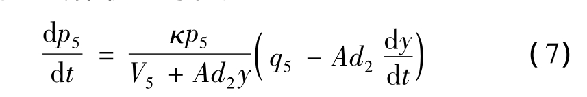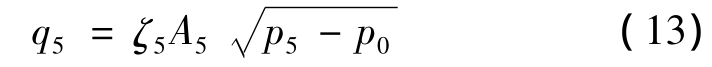 式中,q5为导阀载荷腔输入体积净流量;V5为导阀载荷腔体积。