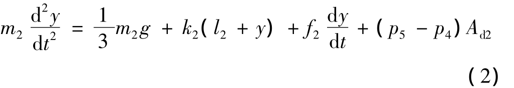 式中,m2为导阀机械系统的有效质量;y为导阀薄膜阀杆连接件的位移;g为重力加速度;k2为导阀弹簧刚度;l2为导阀阀芯全闭时弹簧压缩量;Ad2为导阀薄膜有效面积;f2为导阀薄膜阀杆连接件运动时的阻力系数;p4为导阀信号腔气体绝对压力;p5为导阀载荷腔气体绝对压力。