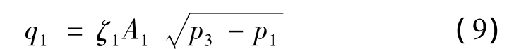 式中,q3为主阀低压腔输入体积净流量;p3为主阀低压腔绝对压力;V3为主阀低压腔体积。