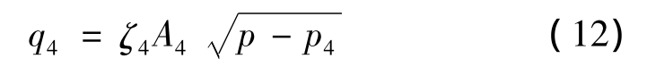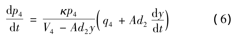 信号腔气体状态方程为:式中,q4为系统流入导阀信号腔的流量;V4为导阀信号腔体积。