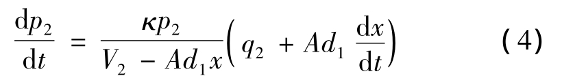 式中,q2为主阀低压腔流入主阀载荷腔的流量;V2为主阀载荷腔体积。