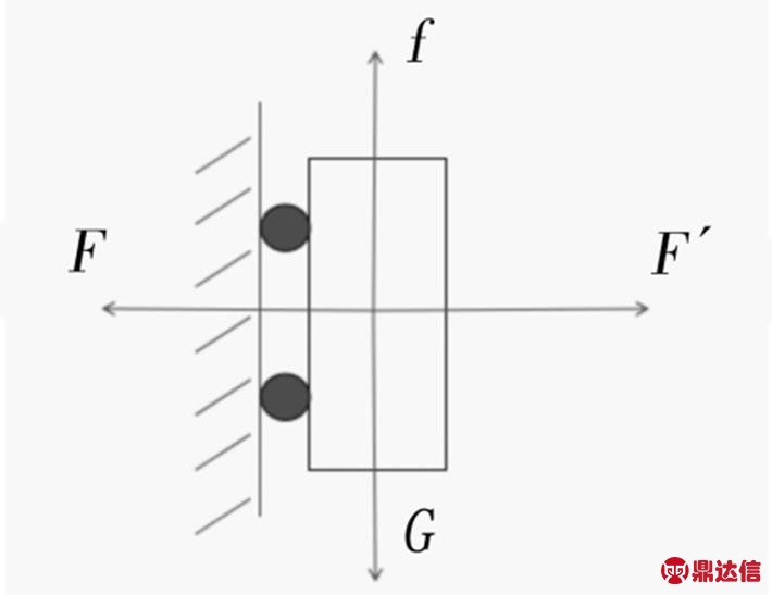 玻璃清洁机器人通过安全线固定在建筑的某一点后,首先必须实现吸附在玻璃壁上的功能。目前应用于玻璃清洁的机器人吸附方式主要有磁式吸附、负压吸附、螺旋桨吸附。三种方式的原理都是通过不同的方式使玻璃清洁机器人对玻璃壁面施加正压力则得到玻璃壁面的反作用力,进而产生摩擦力克服机器人的重力,以至于玻璃清洁机器人吸附在玻璃壁面,原理如图1所示。