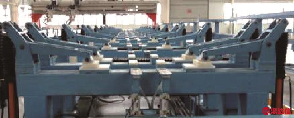 根据焊接工艺要求,需要对中间地板型材进行向下力吸引。如图6所示,我们对地板中间型材的真空吸盘采用两排进行布置,每排数量为24个。每16个吸盘由一个干式真空泵进行控制,从而能够有效的对各个吸盘产生最佳的真空度,对产品进行有力的向下吸引。