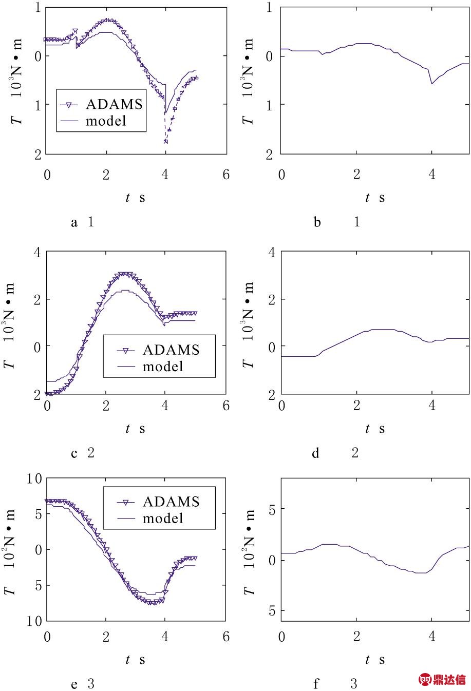 由图3可知,三轴力矩误差较小,说明动力学方程以及各项表达式在形式上是正确的。误差的主要原因可能是忽略了摩擦力等阻尼项造成的。