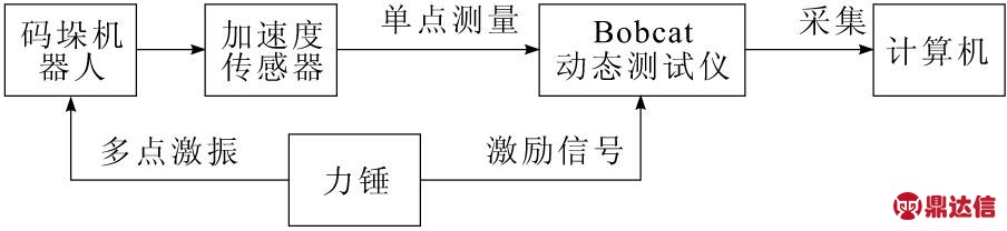 实验仪器:Bobcat动态分析仪,PCB型加速度传感器,内含力传感器的PCB086D20型激振锤,计算机等。实验原理如图5所示。