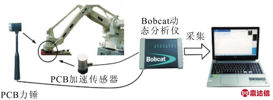由于机构比较复杂,且仿真分析进行了一定的简化,有限元分析手段得到的模态分析结果存在一定的局限性。因此,有必要借助模态实验设备进行机器人模态特性分析实验,作为仿真分析的验证。