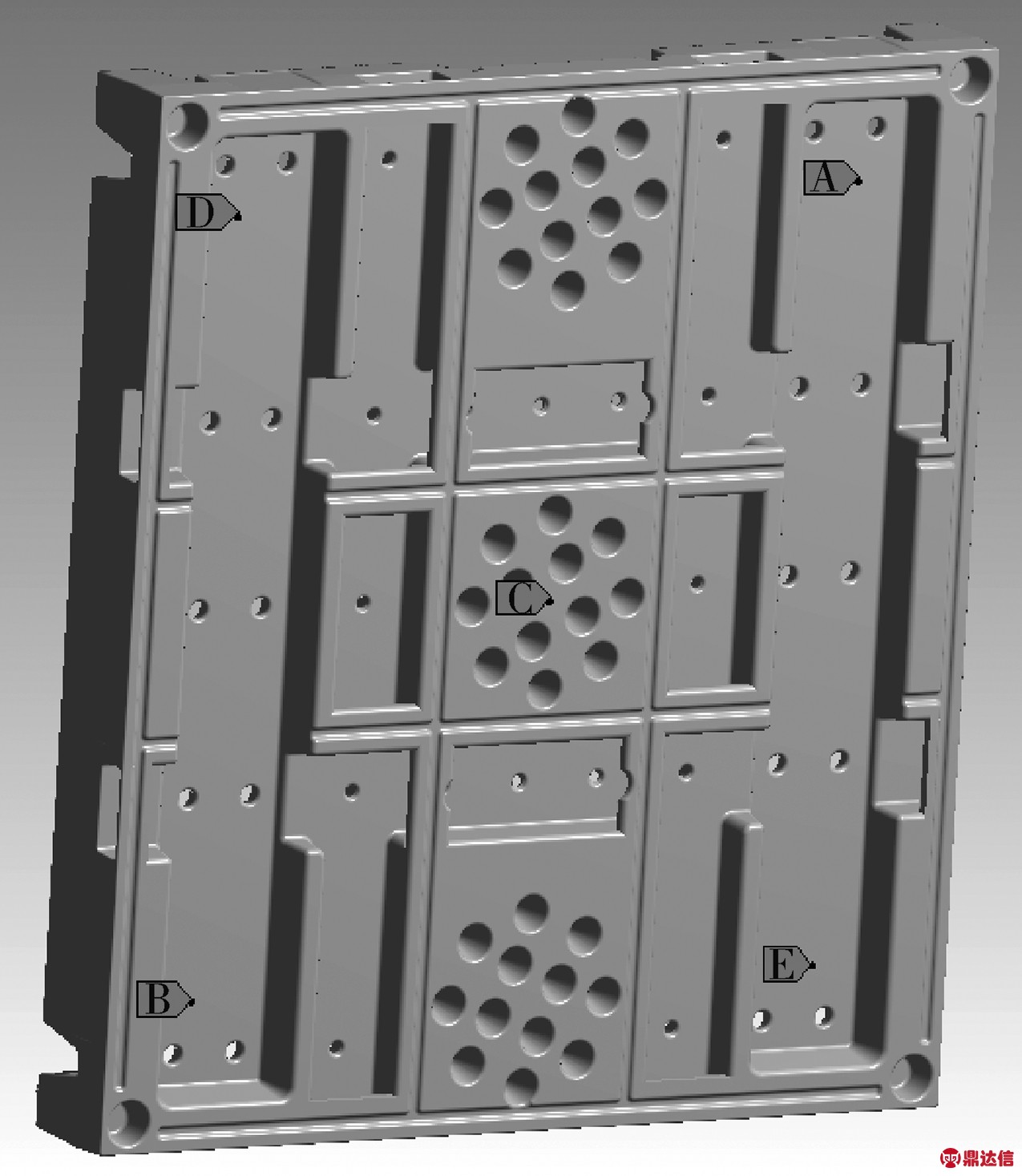 (2)为减少模内冷却的时间,应使得进入托盘内部的冷空气与原来的热空气有更多的机会充分混合,同时应增大托盘内部气流的扰动强度;因此进、出气孔的间距应尽可能的大,进、出气孔应尽可能交叉布置,另外进气孔的总面积不能小于出气孔的总面积;