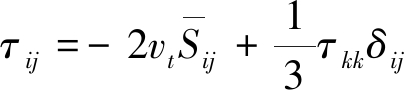 用滤波方程处理非稳态流场下的N-S方程,可得式(2)。式(3)为连续性方程。