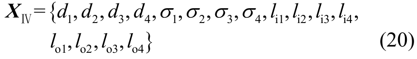 对于四腔微穿孔管消音器,轴向长度设置L1=L2=L3=L4=42 mm。因此,其包括16个参数的优化向量XⅣ可写为