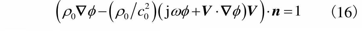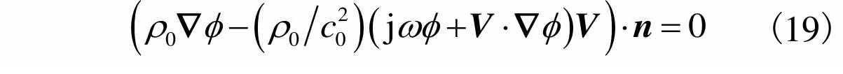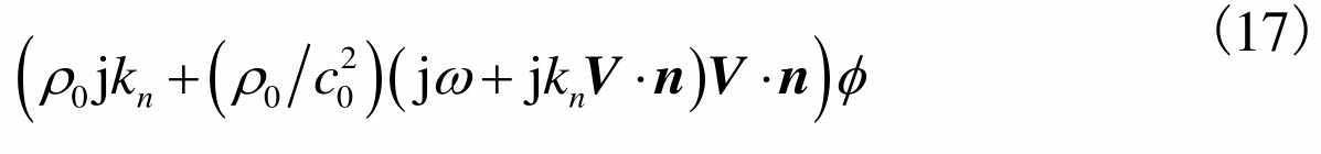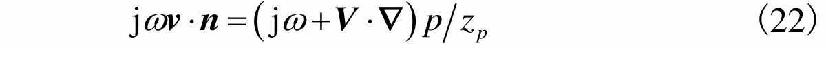 同时假设穿孔面的气流法向速度等于零,那么穿孔面阻抗边界条件可表示为