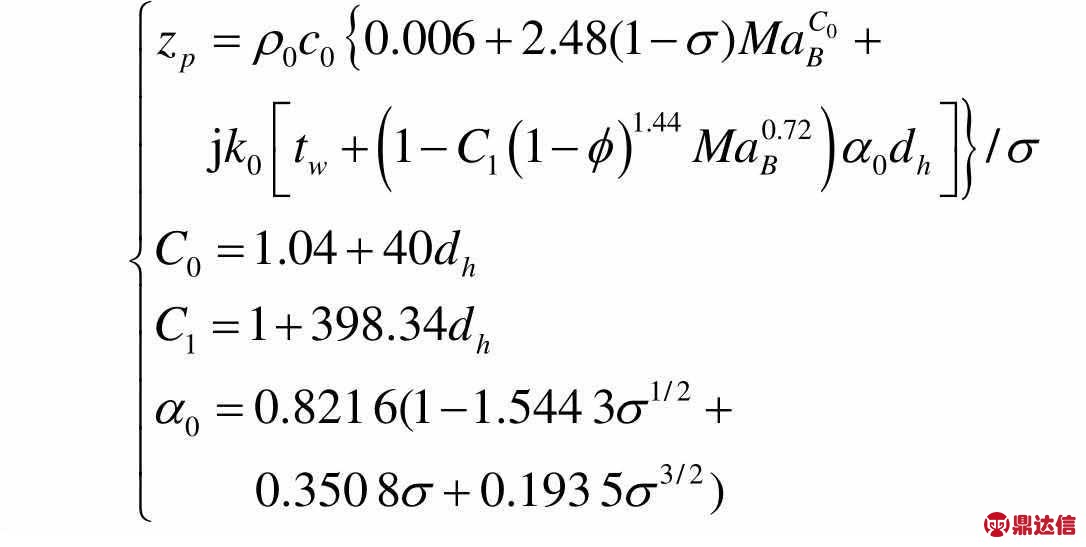1)掠过流作用下的穿孔声阻抗