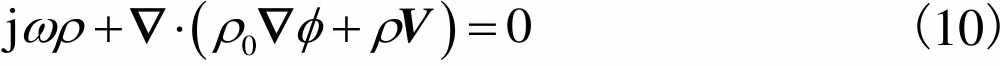 结合上述方程,消除声压和密度变化量后得到声场控制方程为