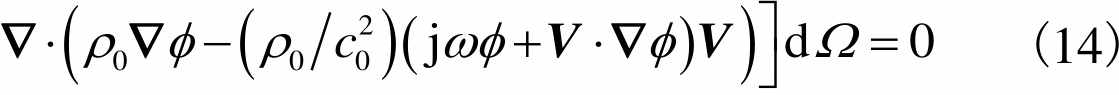 内进行积分,得到势流声学方程的弱形式,即