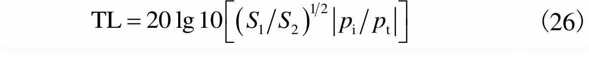 式中:S1和S2分别为消声器进、出口的横截面积;pi和pt分别为消声器进口处的入射声压和出口处的透射声压.