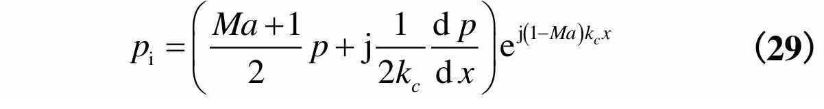 结合式(27)和式(28),计算得到入射声压为