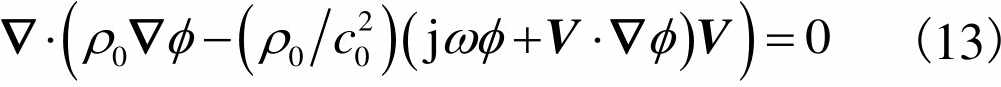 为了考虑流场对声场的影响,假设消声器内的介质为无黏、无旋流动的气体,则控制方程[10]可表述为