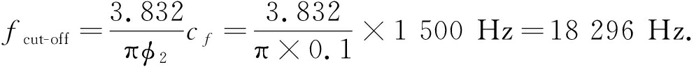 基于平面波理论,消声器进出口管的截止频率[14]为