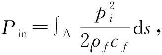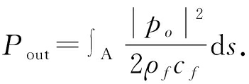 式中:Pin、Pout分别为进口处的入射声功率、出口处的透射声功率,二者可分别由下式计算: