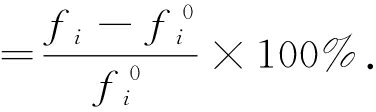 式中:f0i为模型A的第i阶通过频率;fi为模型B的第i阶通过频率.