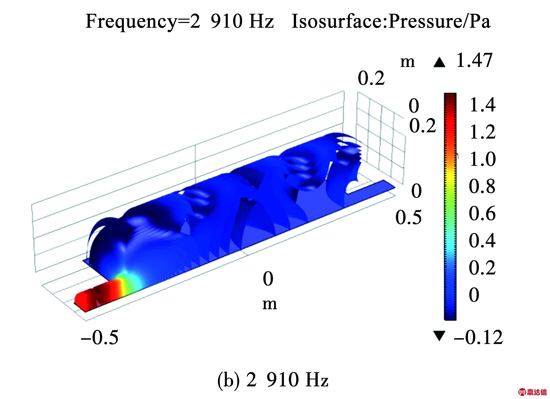 图7 充水结构(模型D)腔内声压分布Fig.7 Acoustic pressure distribution in the water muffler based on model D
