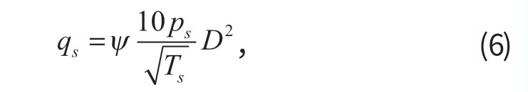 式中:ψ 为与小孔直径有关的试验系数,ψ=7.96;ps为驻压,MPa;Ts为消声器室温度,℃;D 为小孔直径,mm。