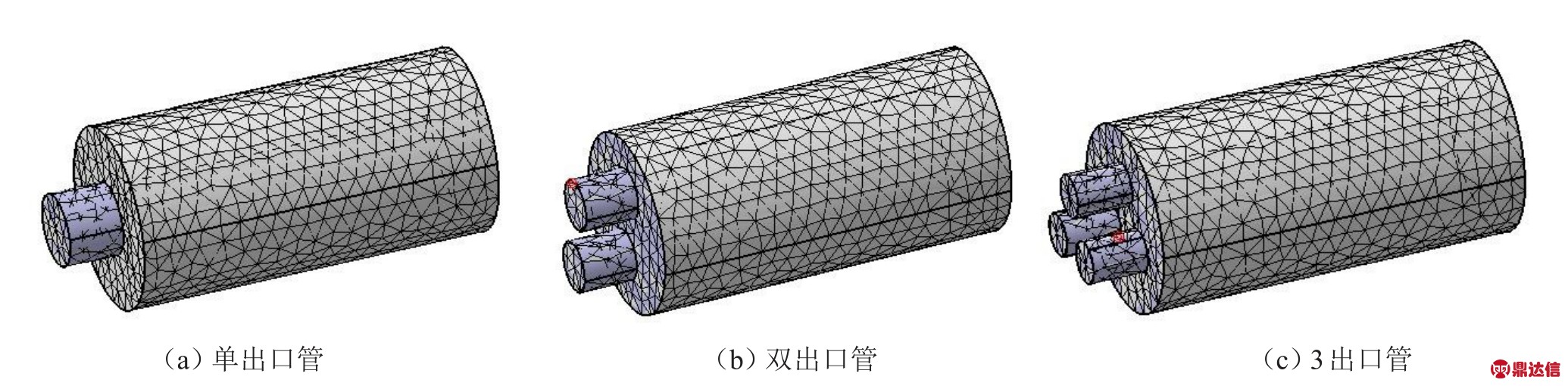 研究消声器端口声能反射情况,出口模型见图2。考虑到不增加排气背压[7],需要保持出口的截面积不变,分别采用单出口管,双出口管,三出口管。