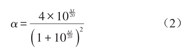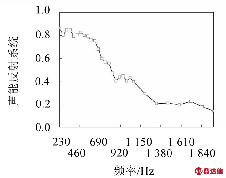 式中:ΔL=Lpmax-Lpmin,由吸声系数α得到声能反射系数γ=1-α,反射系数曲线见图1。可以看出声波在开管中并不是全部辐射出去的,有明显的反射现象,尤其是在低频部分非常明显,与盛胜我研究的特性相符。