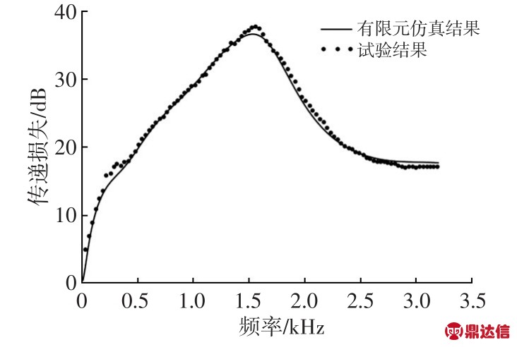 通过有限元法求解得到进口声压和出口声压,代入式(10)即可得到消声器传递损失。