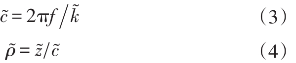 ͂分别为吸声材料的复阻抗和复波数;z0=ρ0c0为空气特性声阻抗;k0=2πf/c0为空气中的波数(本文中空气密度ρ0=1.155 5 kg/m3,声速c0=343.1 m/s);R为吸声材料流阻率。