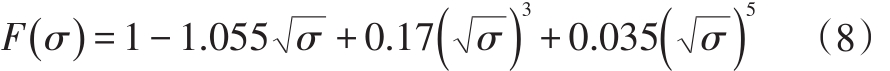 式中,d为小孔直径;σ为穿孔率;F(σ)为考虑小孔之间耦合作用的修正函数。