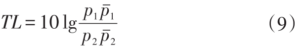 由于消声器出口为全吸声边界,出口只有透射声波,而消声器进口同时存在入射声波和反射声波。将消声器进口声压分解得到入射声压,此时消声器传递损失为: