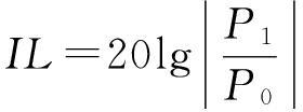 式(1)~(5)中:P1,P2分别为入口声压和出口声压;V1,V2分别为入口体积速度和出口体积速度; A,B,C,D为四端子网络参数,它们组成了仅与消声器结构有关的传递矩阵。