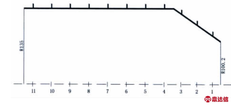 Fig.2 Ring-stiffened convex cone-toroid-cylinder combination shell turning model#2