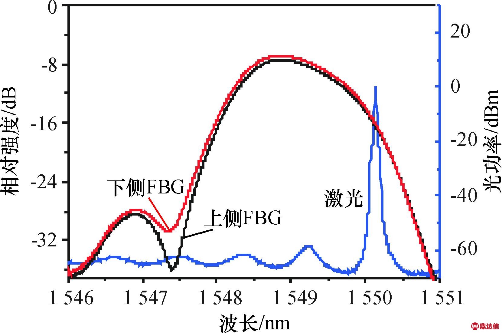 Figure 4 The reflectance spectrum of FBG and the transmission spectrum of the laser