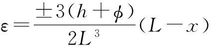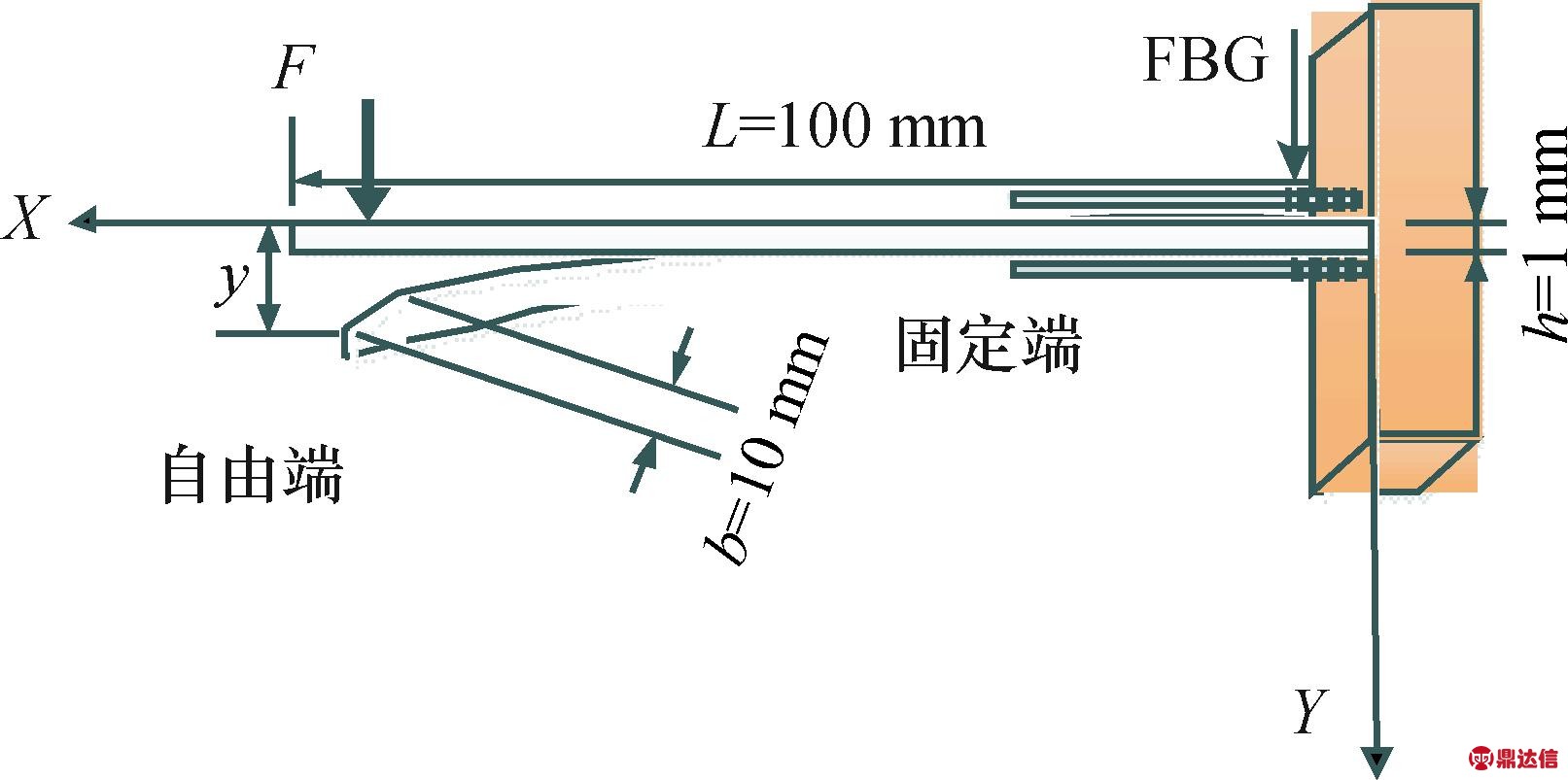 FBG传感器黏贴处与悬臂梁固定端的距离为x,根据材料力学原理,当悬臂梁发生弯曲时,FBG的轴向应变为[8]