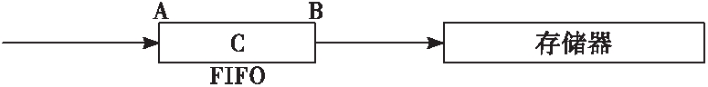 动态信息的存储要求真实有效地记录有用信号,根据射孔爆炸压力信号的特点,需要将触发前压力在一段极短时间内的数据记录下来,这就需要使用负延时技术。本系统采用FIFO式的负延时技术[5],原理如图2所示,在单片机内部RAM中开辟一段存储空间C,高速采集数据由A端进入B端流出到存储器,触发判断在A端进行,通过控制B端流出数据写入存储器的时机,完成对静压及动压数据的记录。