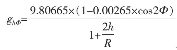 在进行测量的检定室自身的纬度数值为43.989°,海拔高度是730m。因此我们可以把这两个数字带入到重力加速度的计算公式当中,得到下面的算式: