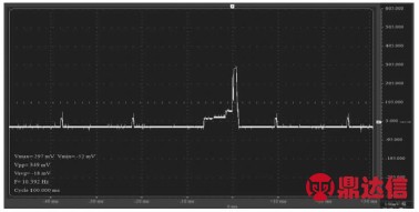 通过该模块电路中串联10欧姆电阻来测试该模块的运行功耗。该模块采用嵌入式Contiki操作系统。在CC2530芯片上Contiki操作系统的工作时钟为7.8ms,增加系统的工作时钟周期来进一步降低功耗,经实际测试平均能耗降低约一半。图6中幅值相对较高的一段波形为该模块启动传感器电路采集数据,并进行发射的波形,幅值最高的一段时间为无线发射时间,持续约2ms。通过万用表串联,可测得压力无线检测模块在每隔5秒发射一次数据的情况下,平均工作电流约为0.2mA。选用3节3400mAh防爆电池并联供电,预计至少可工作5年。